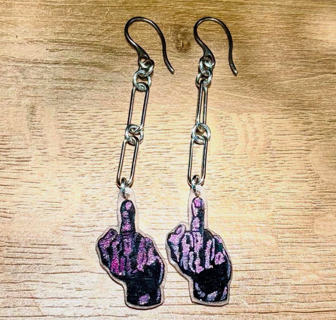 Chained Middle Finger EARRINGS by ThEm's