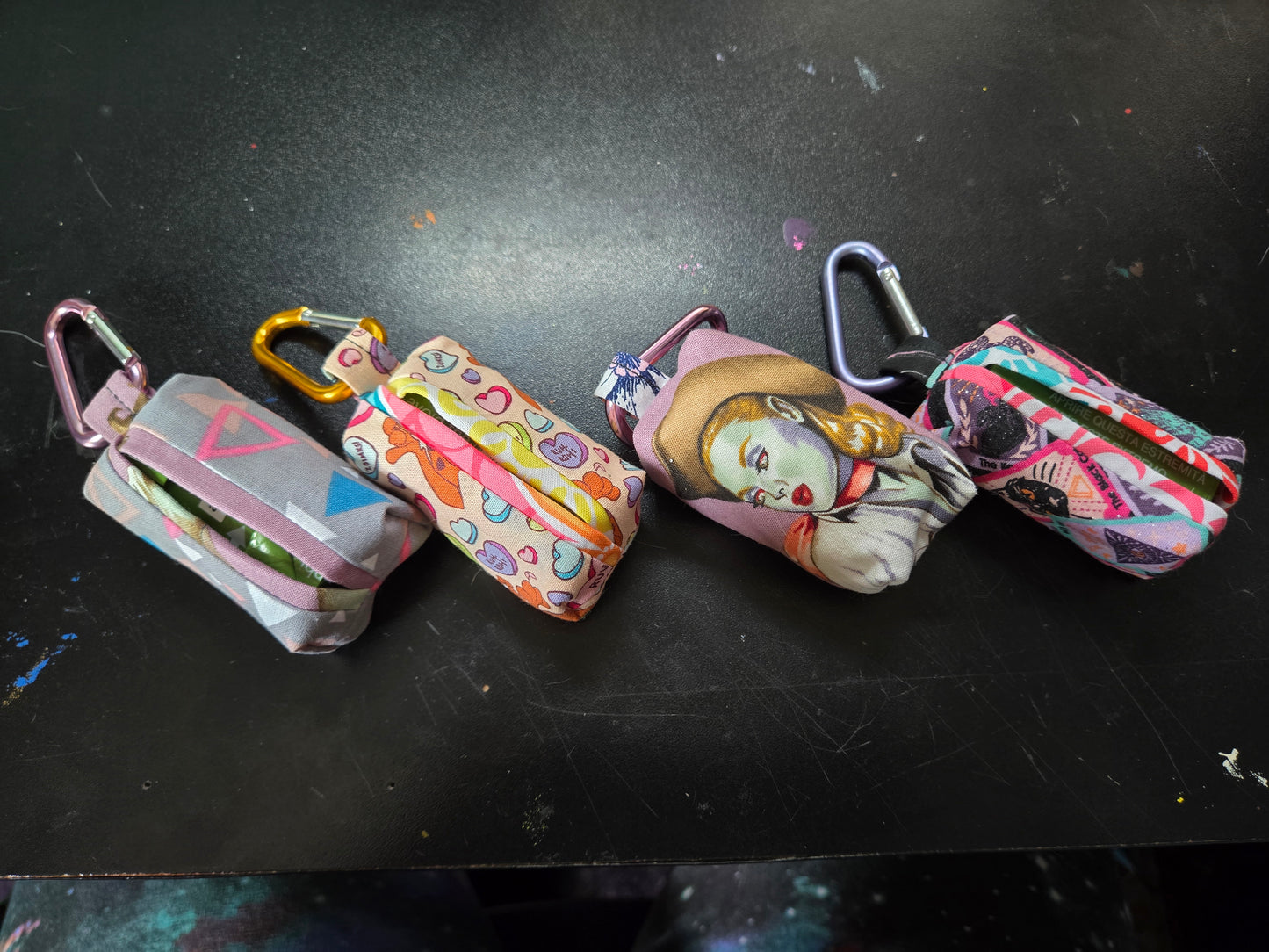 - Comes with a Roll of Poop Bags Fabric Bag Holder, and Carabiner