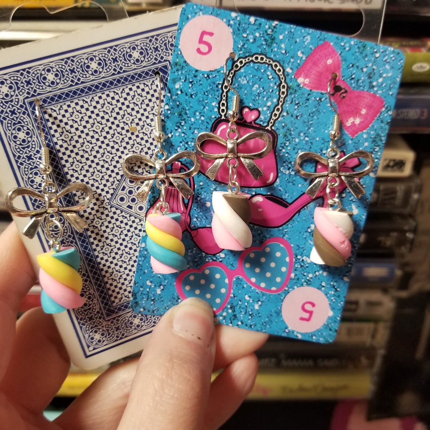 Swirly Candy and Bows EARRINGS by Skullduggery Studio