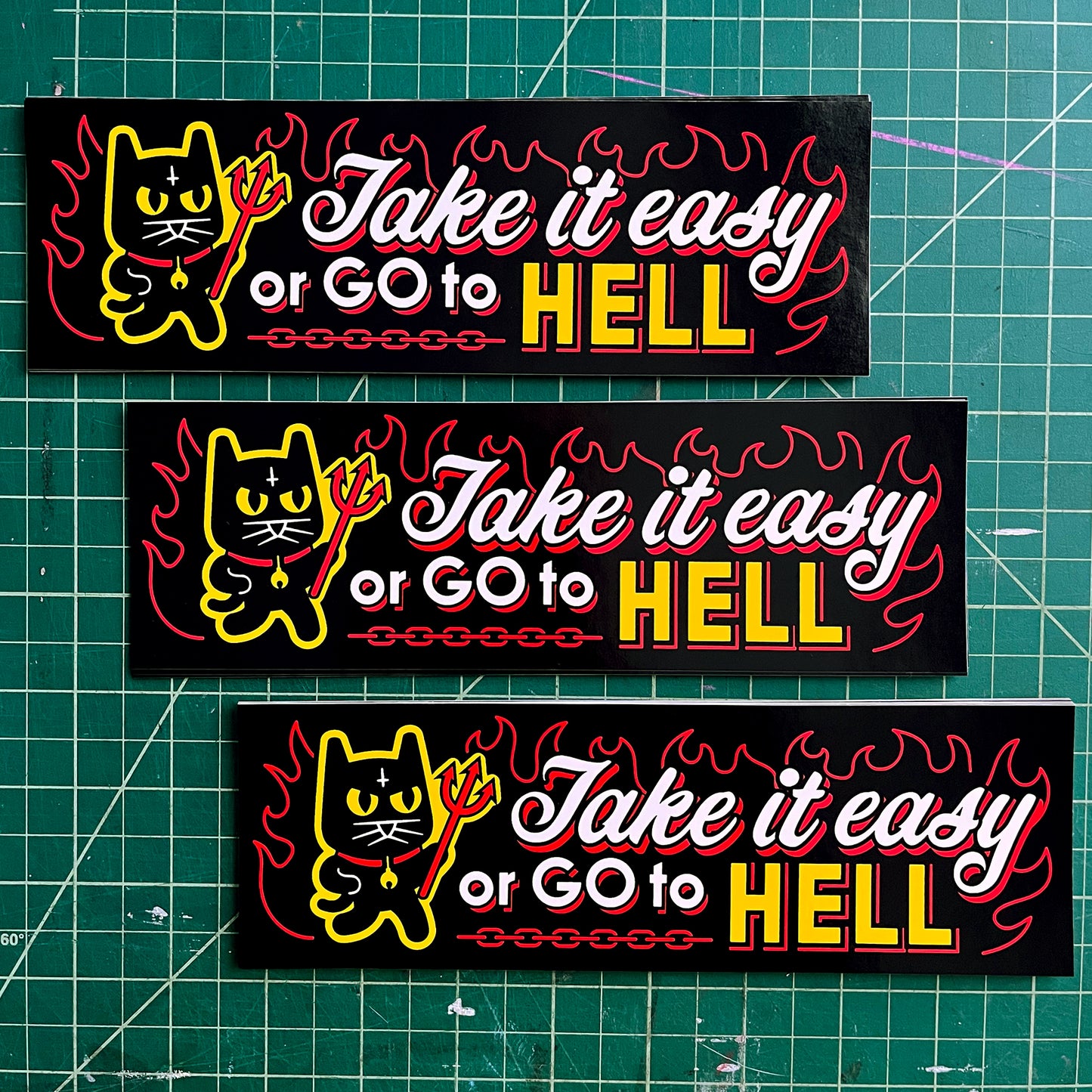 Take It Easy Or Go To Hell BUMPER STICKER by the666cat